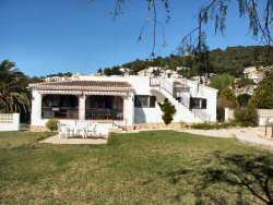 This beautiful three bedroom villa is situated in the Rafalet area of Javea. It stands in secure grounds and offers excellent inland views of the Montgo. There is off road parking for one car. The entrance to the villa takes you into the large, well furnished lounge/dining room, which is equipped with television, video and compact disc system. Off the living room is the large, modern kitchen which has a dishwasher, washing machine, microwave, etc. The three bedrooms are also accessed from the living room. There are two tastefully furnished twin bedrooms which share a bathroom, and one double bedroom with full ensuite. There is a large covered naya overlooking the extensive gardens, which are turfed and therefore ideal for children. The pool is kidney shaped and has internal lighting for those relaxed summer evenings. There is ample terrace for sunbathing. From the garden, steps lead you to the roof terrace, which has excellent views across the orange groves to the Montgo mountain.